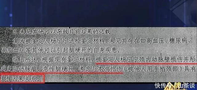 周某涛也许累了,就停了手。 周某涛睡着以后,杨宁宁连夜跑到了姐姐家,才暂时安全了。 第二天中午,杨宁宁感觉不舒服,就自己去就诊,排队的时候忽然症状加重,左胳膊和腿都用不上劲了。诊所医生联系周某涛,把她被紧急送到医院,检查以后确诊是颈动脉壁损伤并形成夹层动脉瘤、急性脑梗死。医生说:这些病症与被掐脖有直接关系。