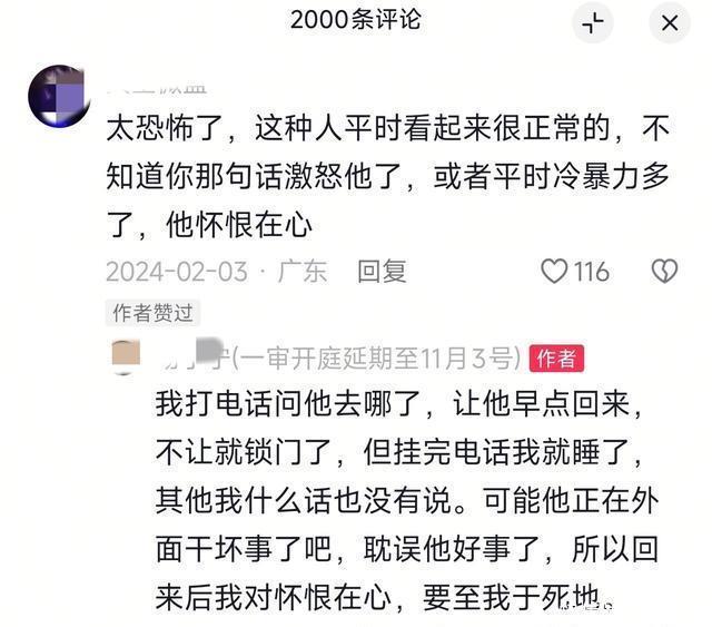 但当时杨宁宁虽然被打的鼻青脸肿,她却没敢报警,只是从那时候开始她就开始小心翼翼的活着。 半夜惊魂。 2022年3月19日凌晨,周某涛还没回家,杨宁宁给丈夫打了一个电话,问丈夫去哪了,早点回来,不然就锁门了。零点59分,杨宁宁挂断电话睡觉了。